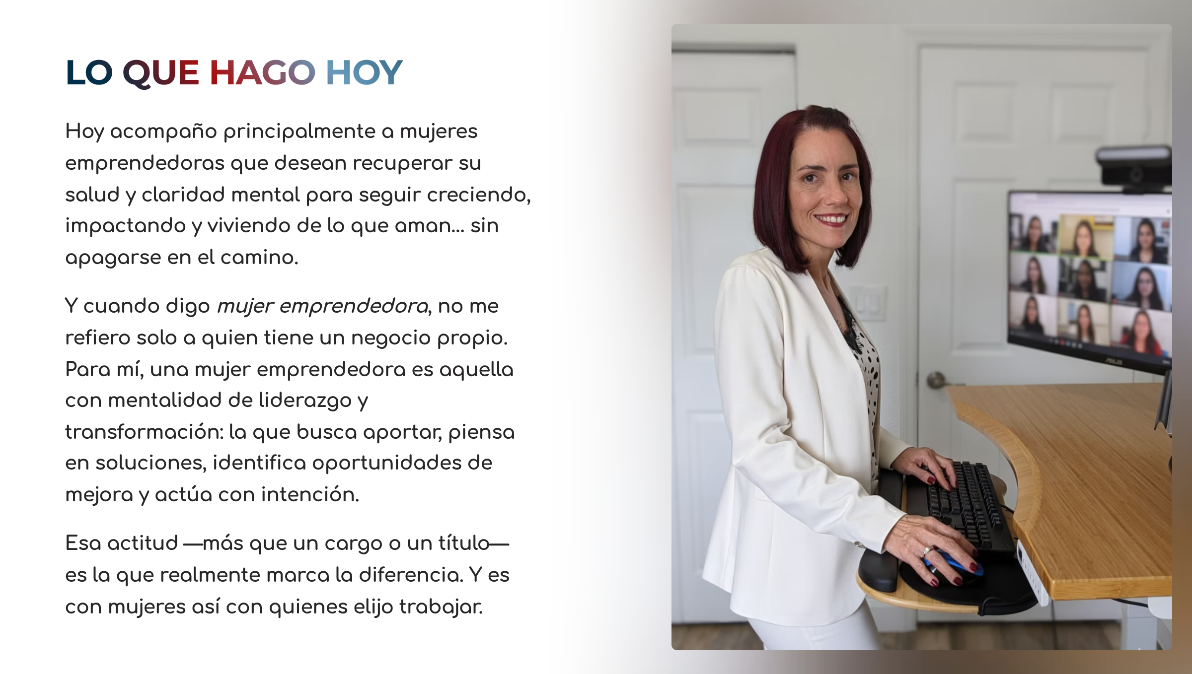 Ya te conté sobre mí. Ahora me encantaría conocer un poco sobre ti: cuáles son tus metas de salud, qué deseas alcanzar en este momento y qué te preocupa de tu energía actual, especialmente si está afectando tu vida personal o laboral.